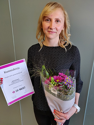 LVI-Naiset ry myöntää joka kevät stipendit ansioituneille LVI-alan naisopiskelijoille. Tänä vuonna stipendit myönnettiin Anni Suutarille Kaakkois-Suomen ammattikorkeakoulusta XAMKista ja Henna Raudaskoskelle Metropolia ammattikorkeakoulusta. Stipendit jaettiin LVI-Naiset ry:nkevätkokouksen yhteydessä, 17.5.2019 Helsingissä. Suutari oli paikalla noutamassa stipendiä, mukanaan lehtori Johanna Arola. Raudaskoski palkittiin poissaolevana.
